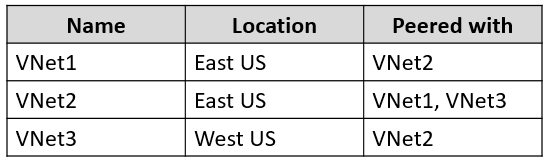 You have an Azure subscription that contains the virtual networks shown in the following table.