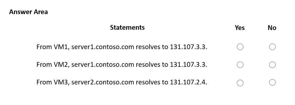 VM4 has a DNS server that is authoritative for a zone named contoso.com and contains the records shown in the following table.