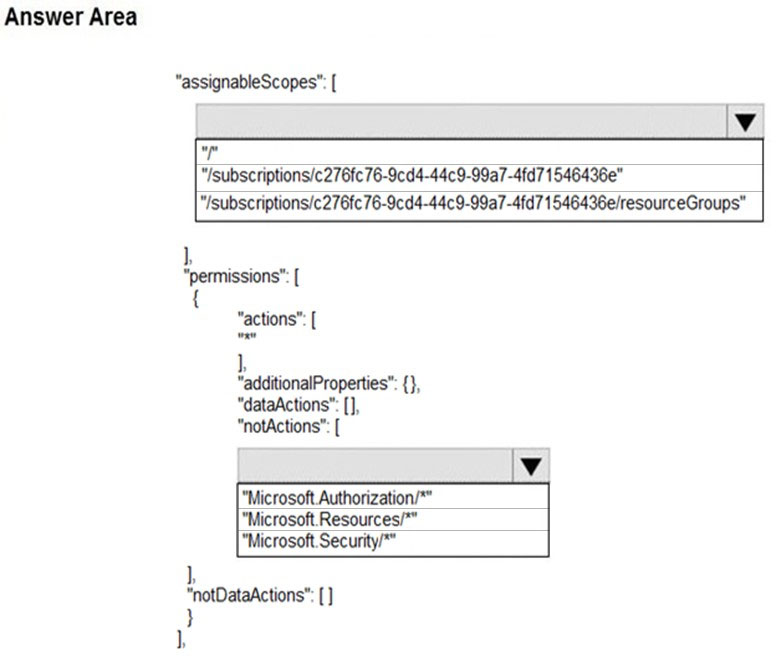 You have an Azure subscription named Subscription1 that has a subscription ID of c276fc76-9cd4-44c9-99a7-4fd71546436e.