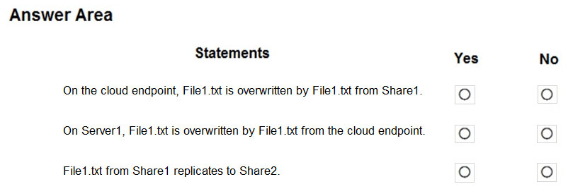 You have a sync group named Sync1 that has a cloud endpoint. The cloud endpoint includes a file named File1.txt.