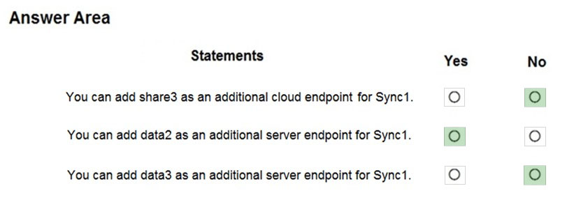 You create an Azure file sync group named Sync1 and perform the following actions: