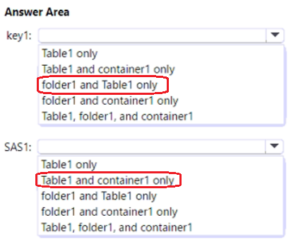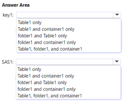 To which resources can User1 write by using SAS1 and key1? To answer, select the appropriate options in the answer area.