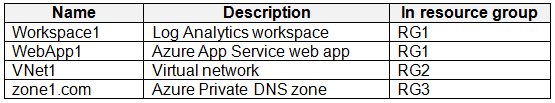 ADatum has an Azure subscription that contains three resource groups named RG1, RG2, and RG3.