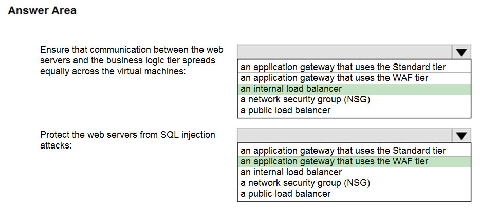 ✑ Ensure that communication between the web servers and the business logic tier spreads equally across the virtual machines.