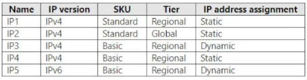 You have an Azure subscription that has the public IP addresses shown in the following table.