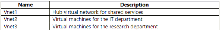 The company has an Azure subscription that contains the virtual networks shown in the following table.