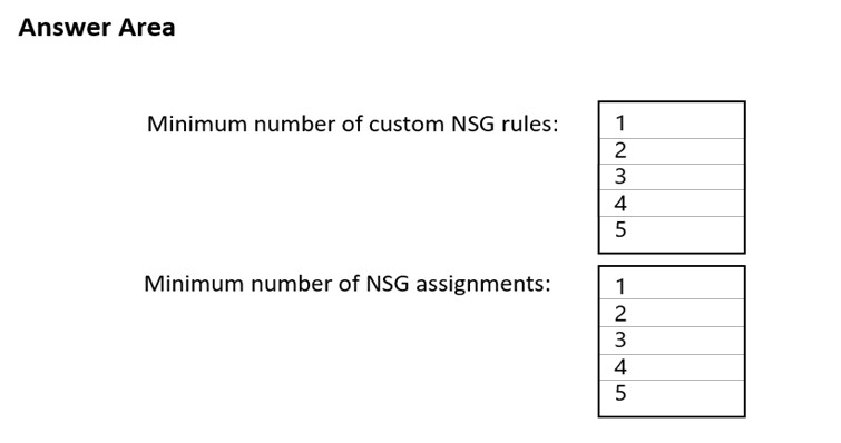 What is the minimum number of custom NSG rules and NSG assignments required? To answer, select the appropriate options in the answer area.